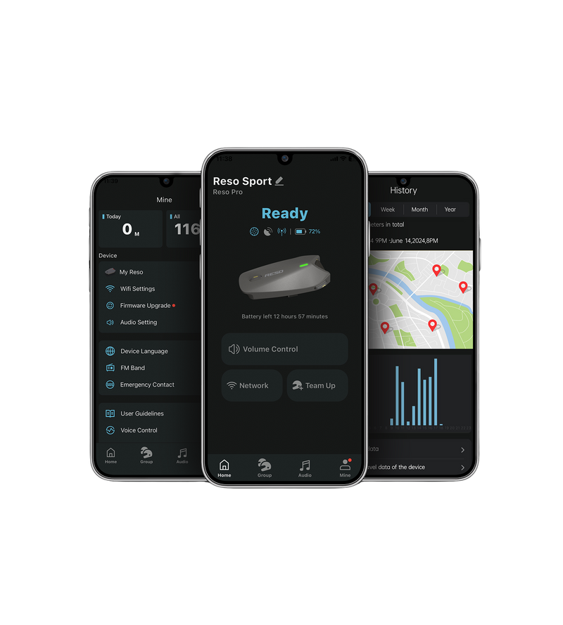 Unlock more with the Reso Link App. From OTA firmware updates and ride tracking to real-time location, EQ tuning, FM radio, music sharing, and one-tap group rejoining — everything you need to keep your adventure in sync.